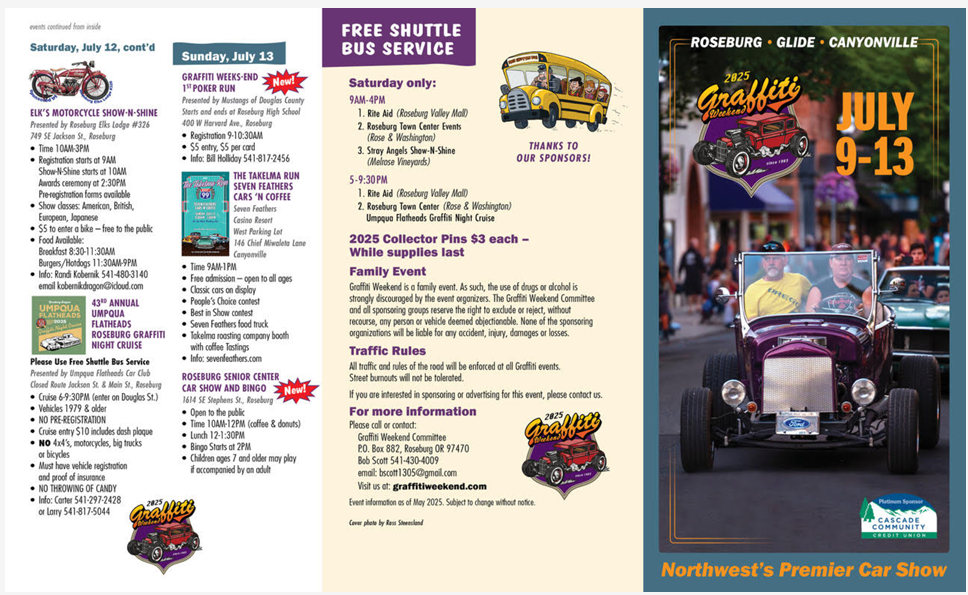 Home History Events Calendar Car Show Photo Galleries Car Show Graffiti Cruise Club Activities Clubs & Links Graffiti Weekend Membership Contact Us Events Calendar Northwest Events List www.cruzinmag.com National Events List www.hemmings.com